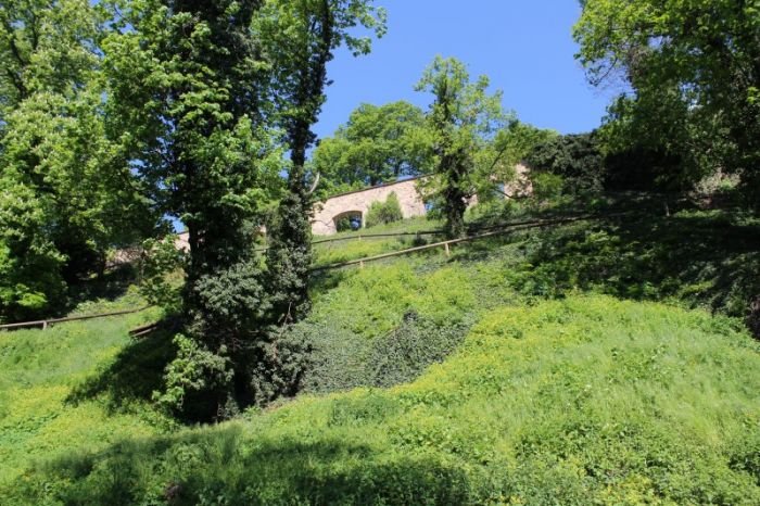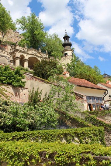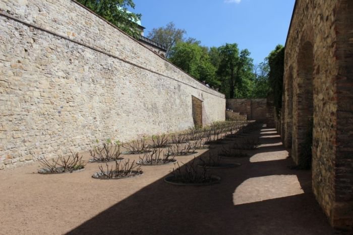 Vyjdeme ze stanice metra Malostranská po chodníku okolo tramvajové tratě, cesta vede po dřevěných lávkách, které jsou na první fotce. Po chvilce dojdeme do Jeleního příkopu, odkud vyjdeme do kopce nejdříve k Fíkovně Pražského hradu a pak ke Královskému letohrádku. Projdeme Královskou zahradu u letohrádku a ještě před Prašným mostem sejdeme zase dolů do příkopu, kde projdeme průchodem pod mostem (ten tunel na fotce). Pokračujeme na konec Jeleního příkopu, odkud vede cesta nahoru na Masarykovu vyhlídku. Odtud se vrátíme podél hradu zpět na Prašný most a bránou projdeme do Hradu. Přes druhé a třetí nádvoří a Býčí schodiště sejdeme dolů do zahrady Na Valech. Dáme se vlevo a asi po 100 metrech najdeme vchod do zahrad pod Hradem. Tady se platí malé vstupné, ale stojí to za to, zahrady jsou úplně kouzelné. Postupně projdete Ledeburskou, Malou a Velkou Pálffyovskou, Kolovratskou a Malou Fürstenberskou zahradu. Zahrady jsou v prudkém svahu, připravte se na to, že půjdete několikrát po schodech nahoru a dolů. V zahradách je hodně míst k posezení, kašny, různá zákoutí a výklenky a odevšad je krásný výhled na Malou stranu a celou Prahu.